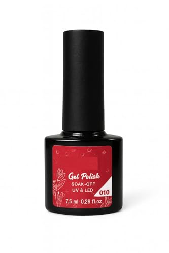SNS SECRET NAILS SYSTEM - زجاجة طلاء أظافر جل لون الطلاء يضمن تطبيقاً سلساً لمسة نهائية لامعة بالأشعة فوق البنفسجية/ليد يزال بالنقع، لتصاميم الأظافر والمانيكير والاستخدام في الصالونات والمنزل، 7.5 مل، أحمر (Pure Red) درجة 010