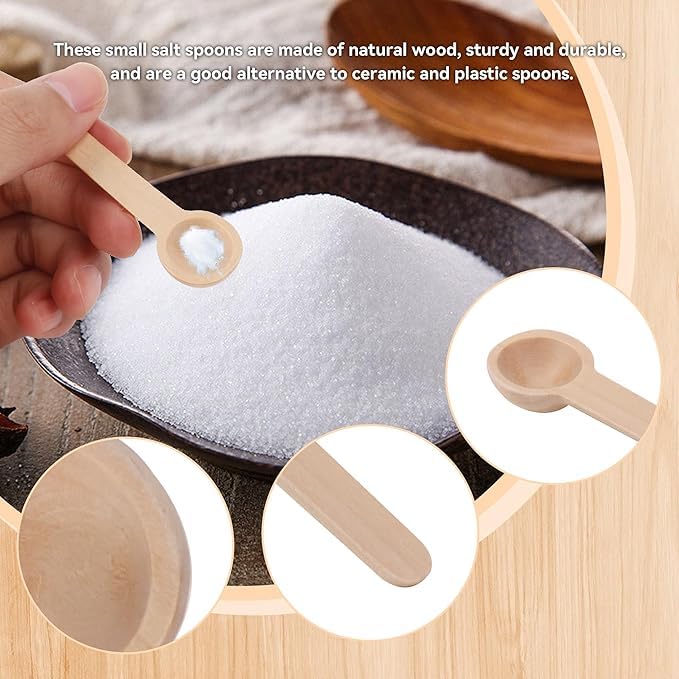 - ملاعق الملح الصغيرة هذه مصنوعة من الخشب الطبيعي، خفيفة وقوية، مصنوعة يدويًا بشكل جميل، لون الخشب الطبيعي، مظهر أنيق، تضيف عناصر طبيعية إلى طاولتك. جميع الأجزاء ناعمة ومسطحة لتجنب إصابة اليد