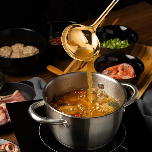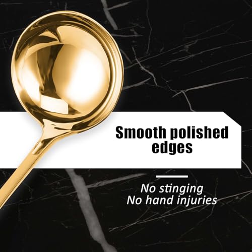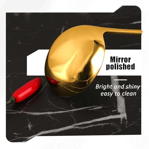 - تفاصيل المقاس: طول ملعقة المرق الذهبية 7.87 انش/20 سم، وعرض الرأس: 2.36 انش/6 سم، الحجم المناسب يبدو أنيقًا وعمليًا، وهو مساعد جيد في مطبخك