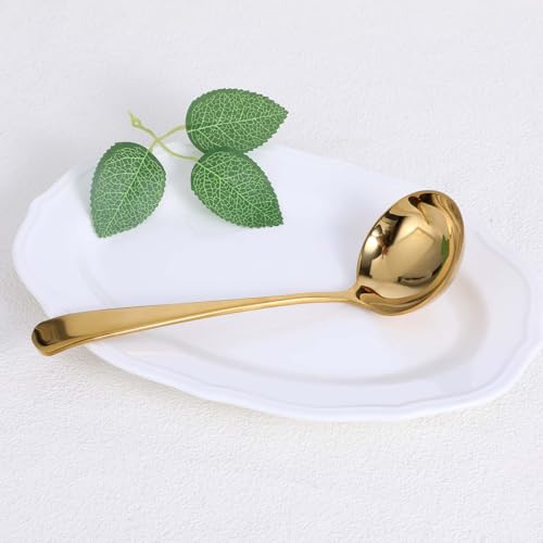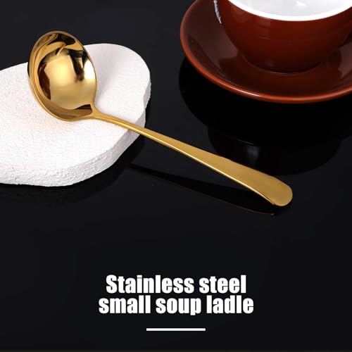 Hariendny - مغرفة حساء مرق صغيرة ذهبية من الفولاذ المقاوم للصدأ 18/10 للصلصات أو المرق، 20 سم