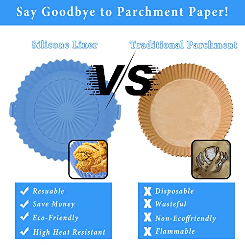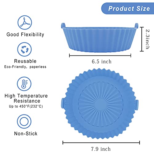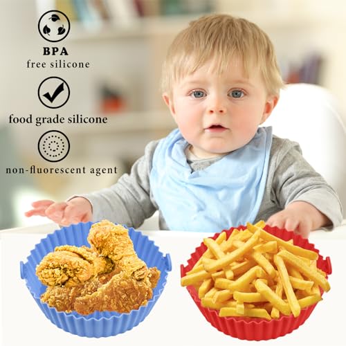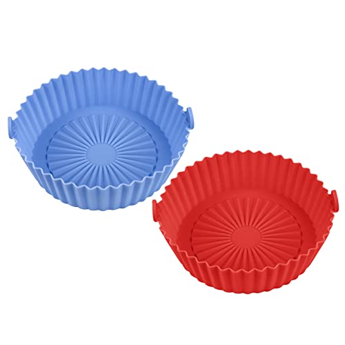 Convend - وعاء سيليكون للقلاية الهوائية 7.9 بوصة (20 سم)، مفارش قلاية هوائية آمنة على الطعام، ملحقات فرن، مفارش قابلة لإعادة الاستخدام، قطعتين، لون أحمر وأزرق، مقاس L، سعة 2.8 - 4.7 لتر، من كونفيند