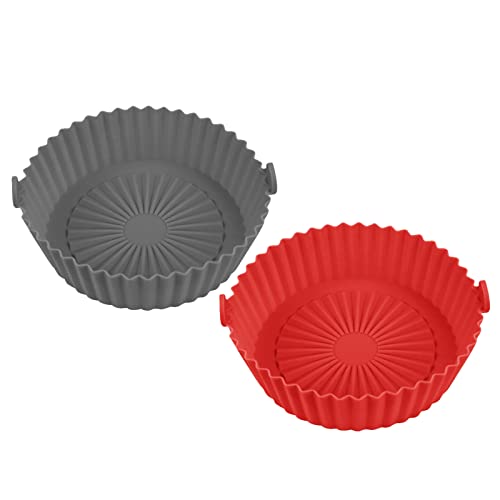 Convend - وعاء سيليكون للقلاية الهوائية 7.9 بوصة (20 سم)، مفارش قلاية هوائية آمنة على الطعام، ملحقات فرن، مفارش قابلة لإعادة الاستخدام، قطعتين، لون أحمر وأزرق، مقاس L، سعة 2.8 - 4.7 لتر