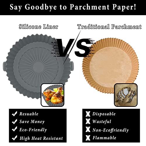 - 【استخدام واسع النطاق وتوافق رائع】صينية الخبز المصنوعة من السيليكون متعددة الاستخدامات ومتوافقة مع العديد من الأجهزة المنزلية، وهي إضافة عملية للمطبخ. يمكن استخدامها في القلاية العميقة، البخار، الفرن، المحمصة، وعاء الضغط، والميكروويف وغيرها. المقاس الكبير: 21.6 سم، يناسب تمامًا مفارش القلاية الهوائية سعة 2.8 - 4.7 لتر.