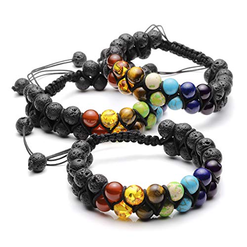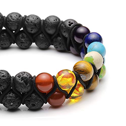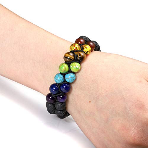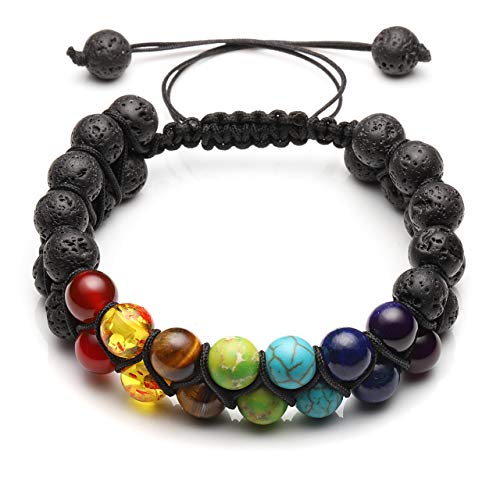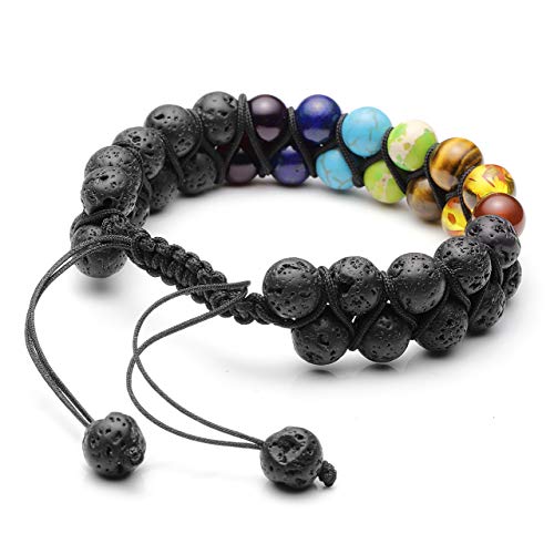 generic - سوار خرز لافا 7 شاكرا للنساء والرجال للتخلص من القلق والشفاء من الكريستال والاحجار الكريمة للعلاج بالروائح العلاجية، سوار قابل للتعديل، عدد 1 (عبوة من 1)، جلد