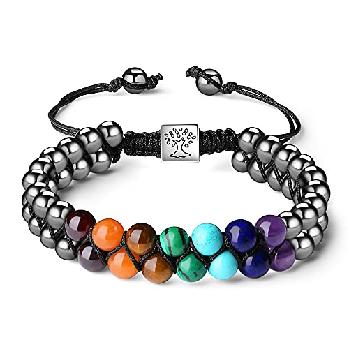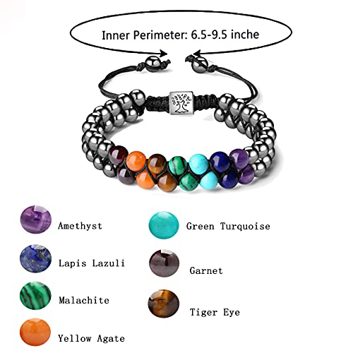 generic - سوار خرز من احجار الشاكرا السبعة لليوجا والتامل، سوار كريستال علاجي مزدوج الطبقات من الاحجار الكريمة الطبيعية، اساور خرز لتخفيف القلق للنساء والرجال، 8.5 انش، حجر، غير معروف