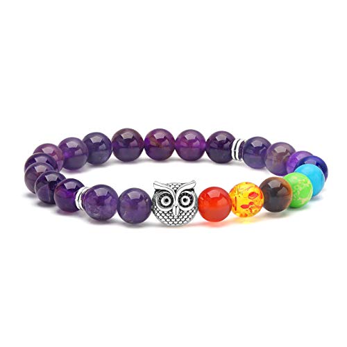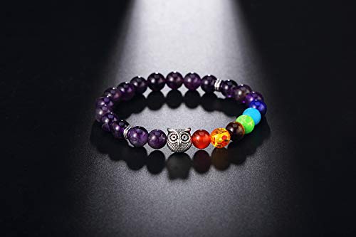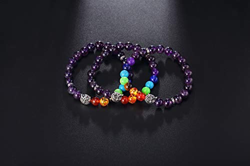 generic - سوار خرز من احجار الشاكرا السبعة لليوجا والتامل، سوار كريستال علاجي مزدوج الطبقات من الاحجار الكريمة الطبيعية، اساور خرز لتخفيف القلق للنساء والرجال، مقاس M، كريستال