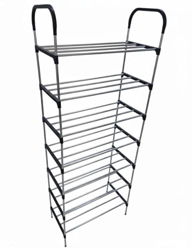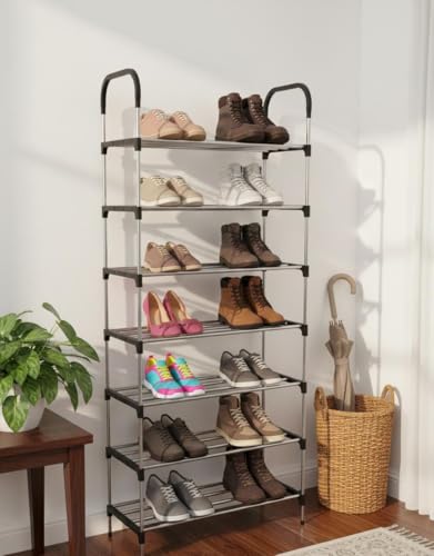 Spaceshoop - رف أحذية معدني يعمل كمنظم أحذية معدني قائم بذاته وبرج أحذية قابل للتكديس لغرفة المعيشة وجزامة محمولة مكونة من 7 طبقات تتسع لحمل حتى 24 زوج (لون أسود)