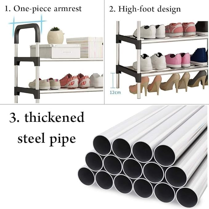 - هذا رف أحذية متعدد الطبقات. هي وحدة قائمة بذاتها، مصنوعة عادة من المعدن أو البلاستيك، صممت لتنظيم وتخزين عدة أزواج من الأحذية. غالبًا ما يكون نوع رف الأحذية هذا قابلًا للتكديس ويمكن استخدامه في الممرات أو الدواليب لتوفير المساحة.