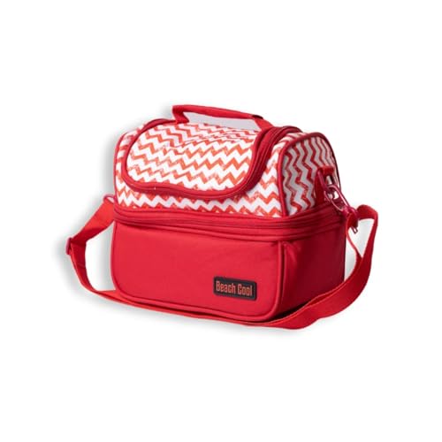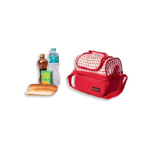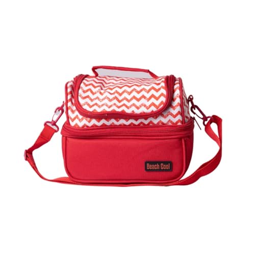 Generic - شنطة غداء حرارية سعة 7 لتر بجيب مزدوج للشاطئ - بنمط هندسي ملون باللون الأحمر