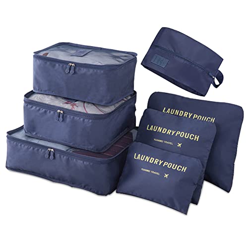 Laiiqi - مجموعة شنط تنظيم شنط السفر من 7 قطع، شنط غسيل للسفر، منظم شنط سفر للامتعة، شنط السفر، مكعبات تعبئة لحملها على الشنطة، منظم الامتعة - ازرق، ايه بي اس