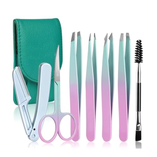 fashion mania - مجموعة ملاقط للحواجب مكونة من 7 قطع، أدوات تجميل يومية مع مقص منحني لإزالة وصلات الرموش والحواجب وملاقط نتف الشعر