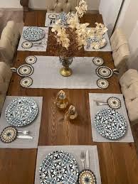 Generic - طقم مفارش للسفره من الكتان والكروشية 7 قطع