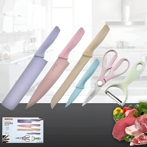 Generic - مجموعة سكاكين المطبخ الجرانيتية المكونة من 7 قطع (تتكون من 4 سكاكين بأحجام مختلفة + مقص + مقشرة + لوح تقطيع) مثالية لجميع احتياجاتك في الطهي