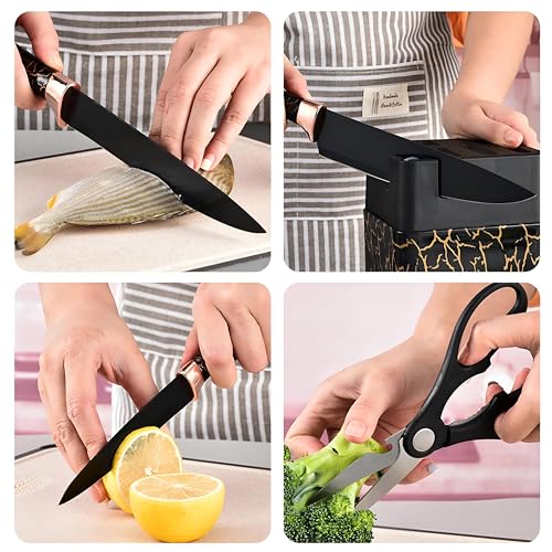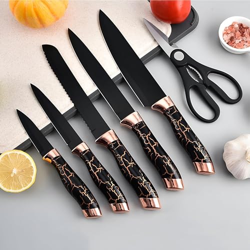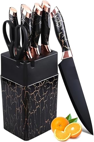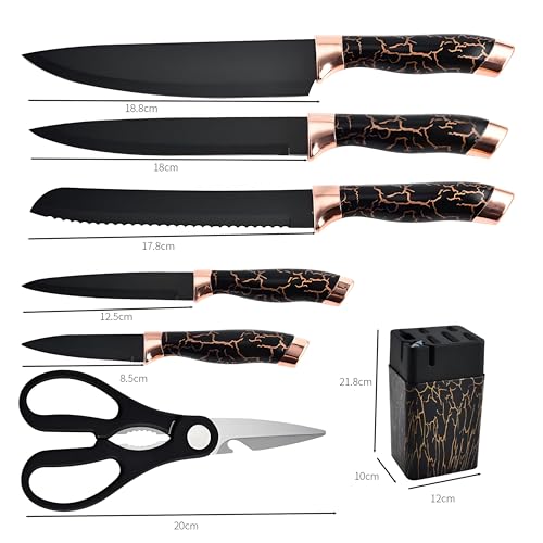 Generic - طقم سكاكين مطبخ متعدد الوظائف من 7 قطع، مصنوع من الفولاذ المقاوم للصدأ، مع مبراة سكاكين داخلية، سكاكين قوية وغير لاصقة للتقطيع، هدية فاخرة تشمل 6 سكاكين ومقص