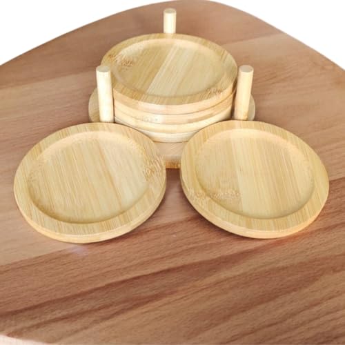 Generic - مجموعة قواعد اكواب من الخيزران الطبيعي مكونة من 7 قطع مع حامل - قواعد اكواب مشروبات صديقة للبيئة للمنزل والمكتب - متينة ومقاومة للماء وتحمي الطاولة