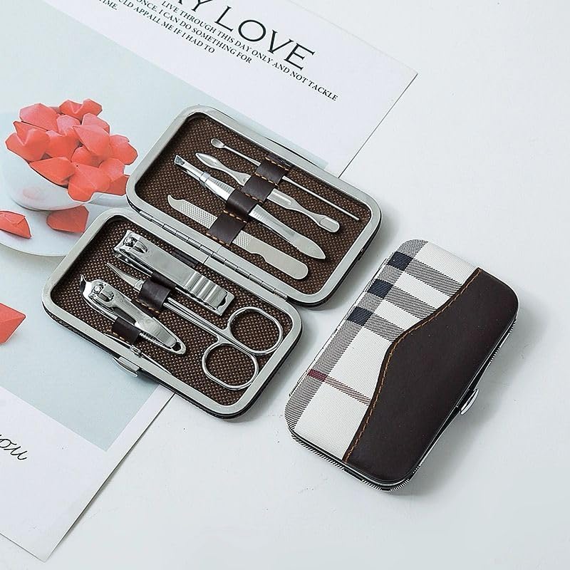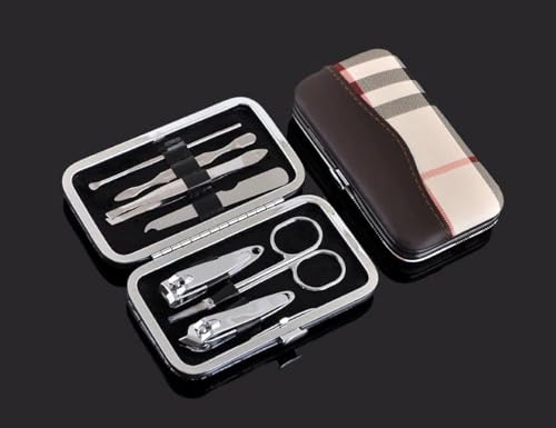 Generic - مجموعة ادوات العناية بالاظافر من الفلاذ المقاوم للصدأ من 7 قطع، من الستانلس ستيل، مع حافظة من الجلد الصناعي