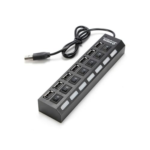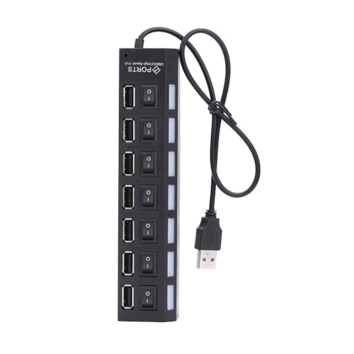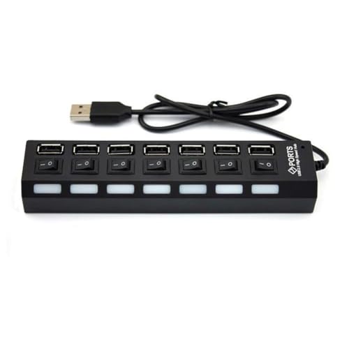 DTOL - موزع USB 7 منافذ مع مفتاح تشغيل/إيقاف، أسود