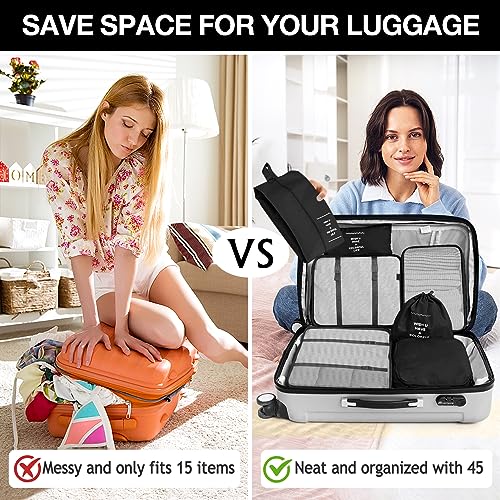 - 【تنظيم فعال وموفر للمساحة】قل وداعًا للبحث في شنتطتك. تسهل منظمات الشنط متعددة الاستخدامات فرز وتفريغ العناصر المتنوعة. بالإضافة إلى الملابس والأحذية وأدوات التجميل، تتضمن شنط التعبئة الخاصة بنا إلكترونيات إضافية وأكياس برباط سحب لإيواء الأغراض الشخصية والملابس المتسخة. بفضل تصميمها المنظم بدقة، ستستعيد المكان والوقت أثناء التنقل.