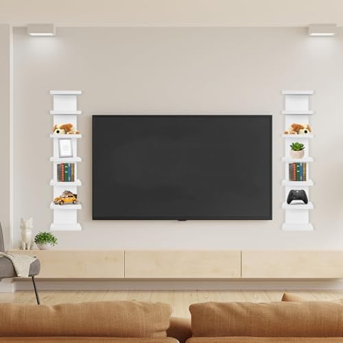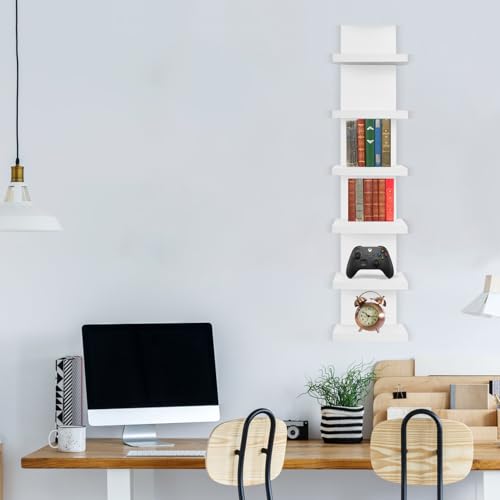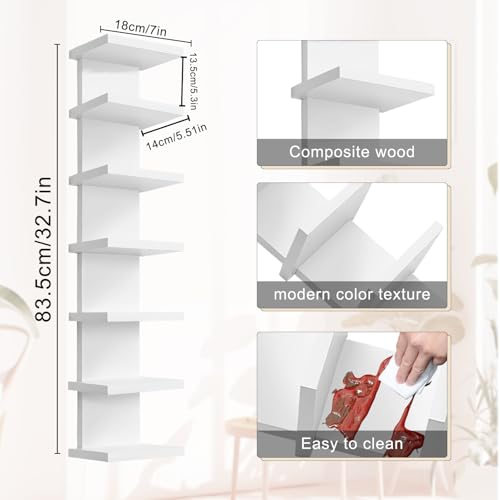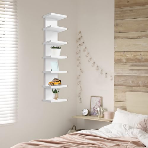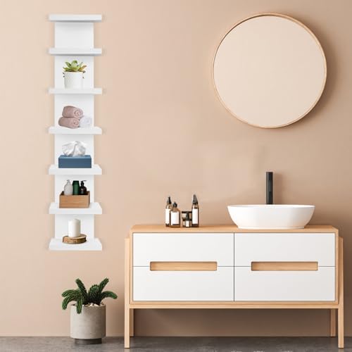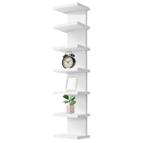 Hlimior - وحدة رفوف حائط من 7 طبقات - رف عائم، رف عرض عائم، عمود عمودي يثبت على الحائط، منظم ديكور منزلي، رف طويل متعدد الاستخدامات لغرف النوم وغرف المعيشة (ابيض)