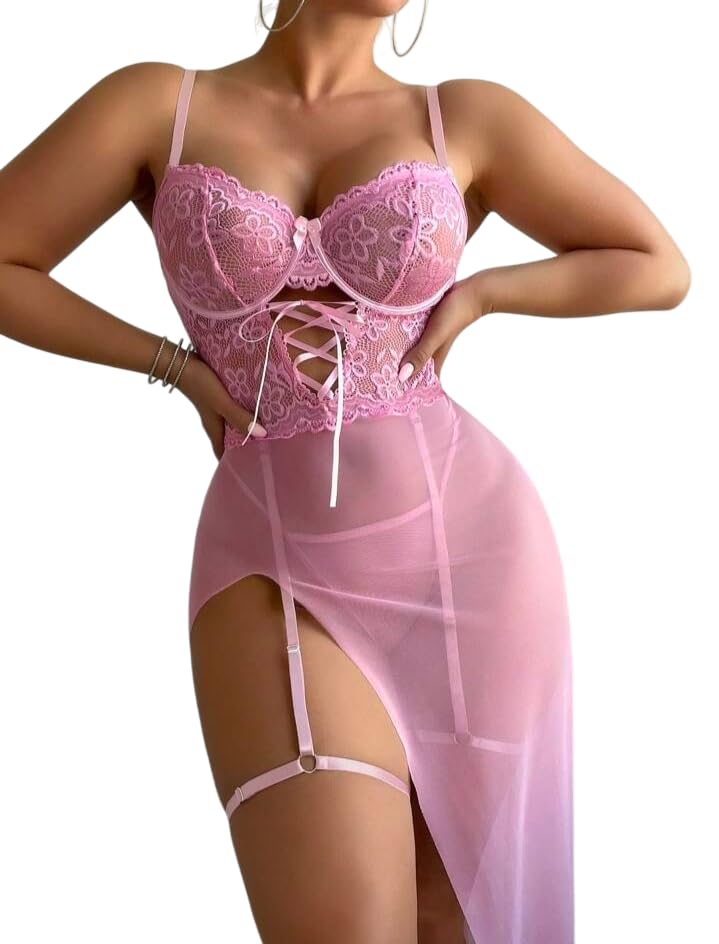 Generic - لانجيري سكسى لانجرى مثير مزخرف بورود بفتحات من الامام مع اربطه لاطلاله جذابه مفعمه بالجاذبيه والجمال بيبى دول طوبل شفاف قميص نوم من كيان للتجارة و التوزيع كود 700 (بيبى بينك, XL)