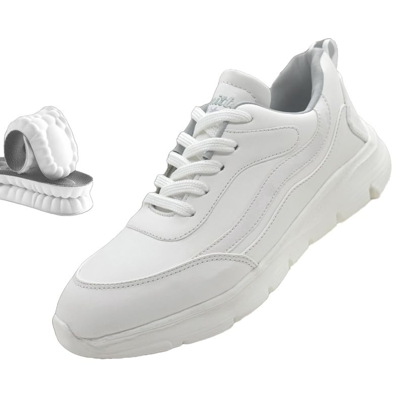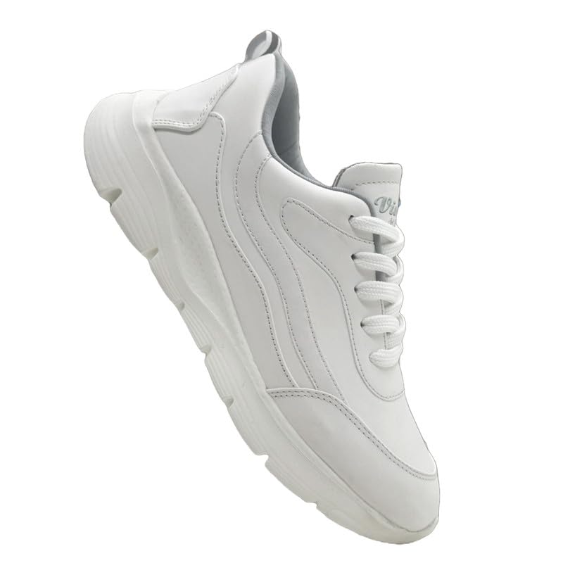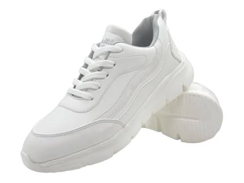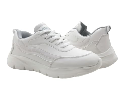 VInITTO - حذاء رياضي جلد ايفا للنساء من فينيتو 713328-7133280100 - حذاء كاجوال مريح برباط للارتداء اليومي - ابيض ورمادي، مقاس 37 EU