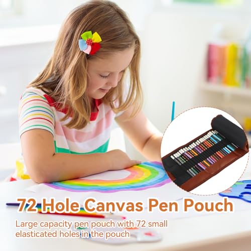 Orixo - حافظة اقلام قماشية قابلة للطي بـ72 فتحة مع مسمار ضغط، قابلة للغسل وقابلة للطي، حافظة اقلام ملونة ذات سعة كبيرة للفنانين والسفر والمدرسة