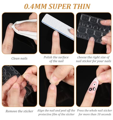 - التصاق مزدوج الجوانب لاستخدام خالٍ من الفوضى: يوفر التصميم ذو الوجهين التصاقًا قويًا وموثوقًا، مما يجعل من السهل تثبيته بالضغط على الأظافر دون فوضى الغراء السائل؛