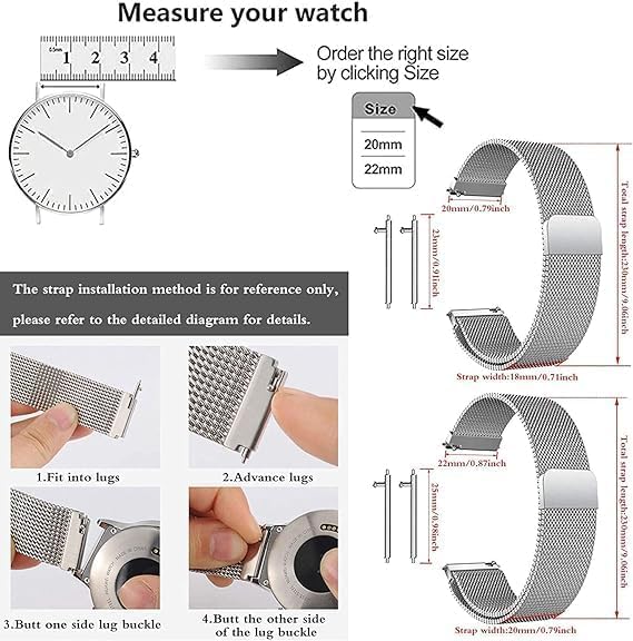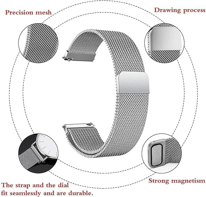 ELMO3EZZ - فضي/سوار رياضي بديل شبكي لساعة فور رانر 745 22 ملم/هواوي GT2 برو 46 ملم/جالاكسي 3 45 ملم/جير S3 فرونتير/كلاسيك/جالاكسي 46 ملم/هواوي GT/GT 1.81 1 بوصة/ساعة واتش برو ELMO3EZZ
