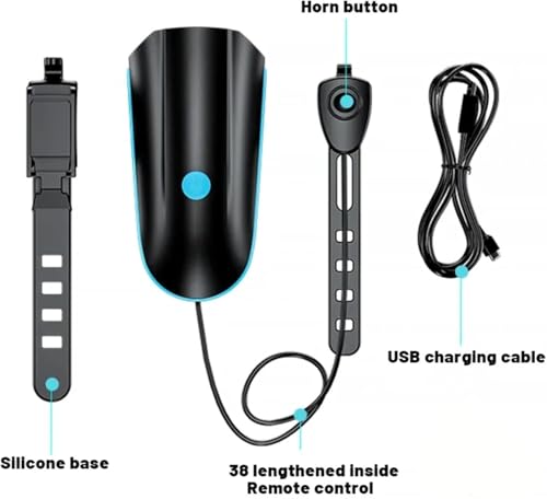- مصباح دراجة 2 في 1 إصدار 7588 مع بوق منبه قوي (140 ديسيبل) مقاوم للماء بدرجة IPX6 - مصباح أمامي LED قابل لإعادة الشحن بـ 3 أوضاع - أزرق أسود