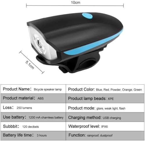 Generic - مصباح دراجة 2 في 1 اصدار 7588 مع بوق تنبيه قوي (140 ديسيبل) ومقاوم للماء بمعيار IPX6 – إضاءة LED أمامية قابلة لإعادة الشحن بثلاثة أوضاع - اللون ازرق فى اسود او حسب المتوفر فى المخزون
