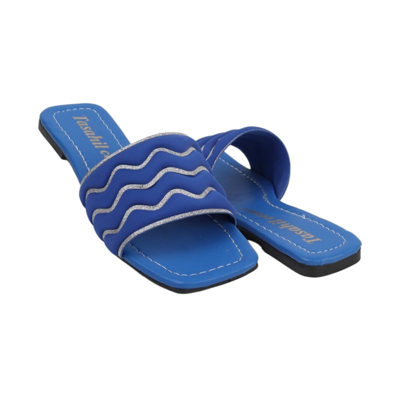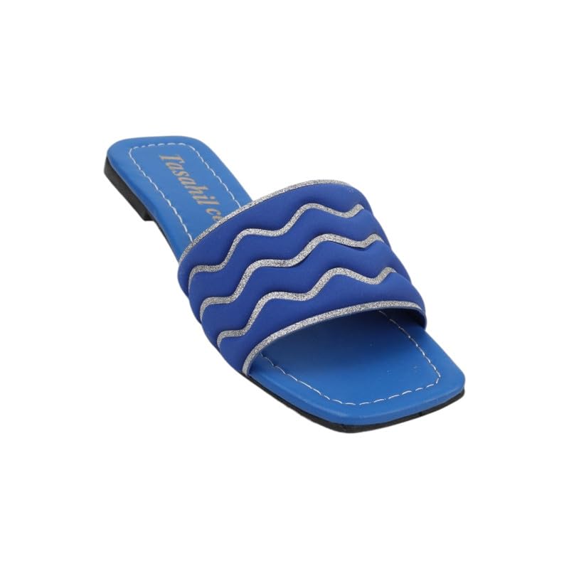 Generic - سليبر حريمى فلات جلد فى قماش 786 ازرق 38