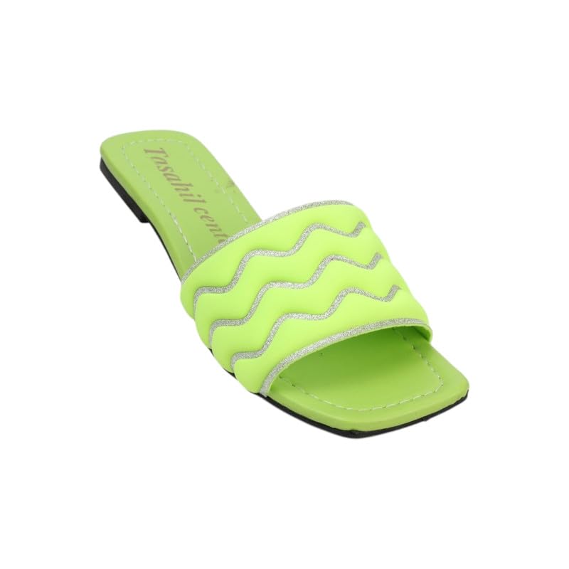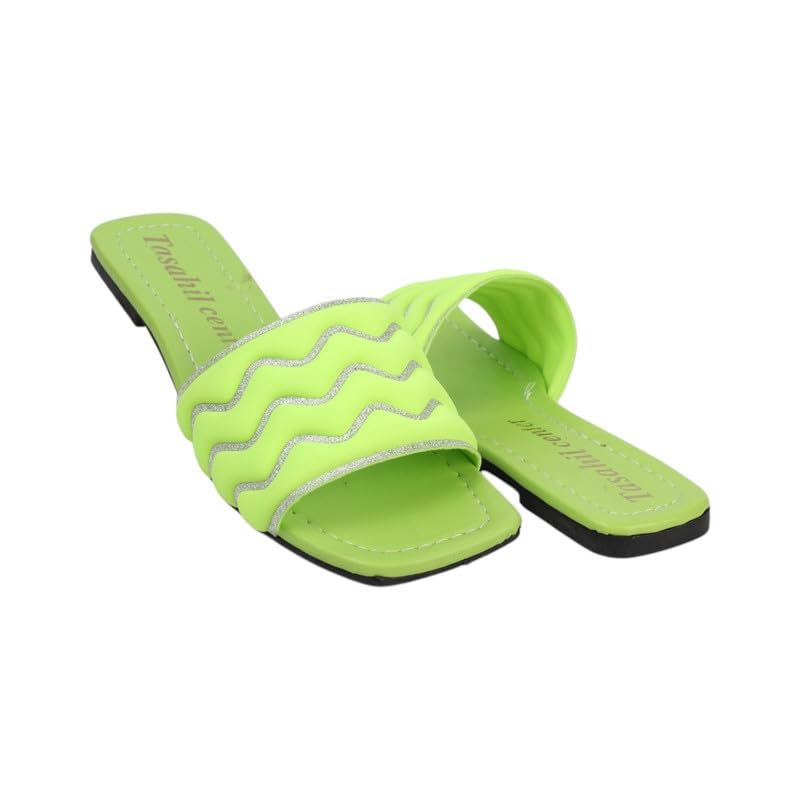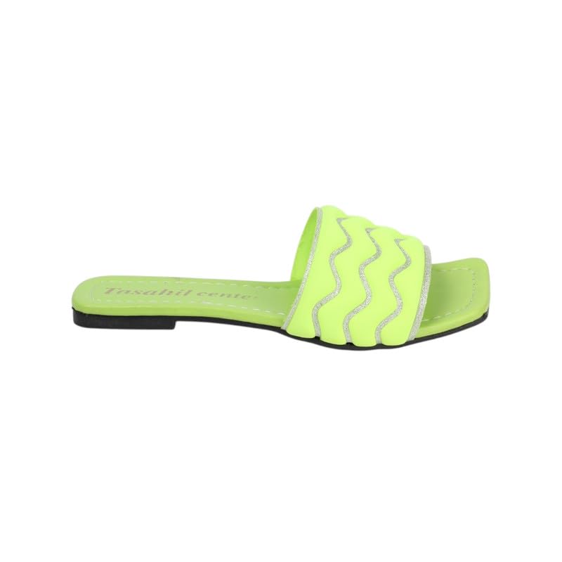 Generic - سليبر حريمى فلات جلد فى قماش 786 ليمونى 39