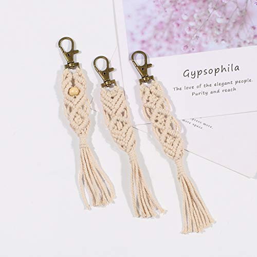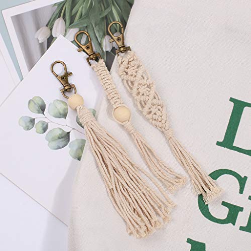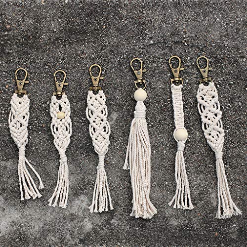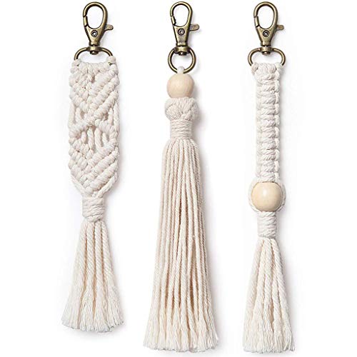 7haofang - سلسلة مفاتيح شنطة مكرمية بوهو دلايات مع شراشيب للتعليق في السيارة من 7 هاوفانج أبيض كريمي حبل قطني هاوفانغ