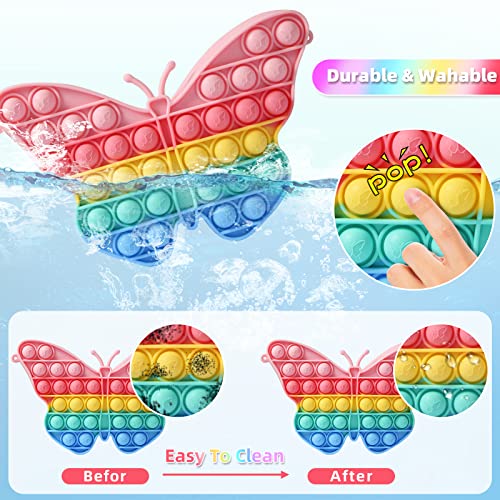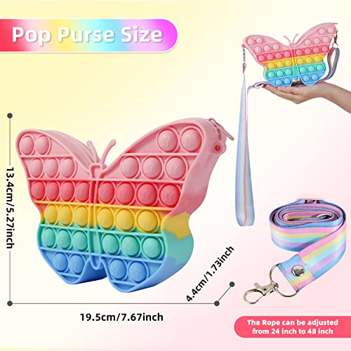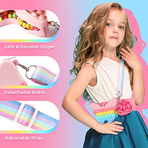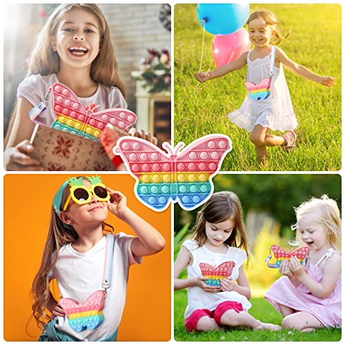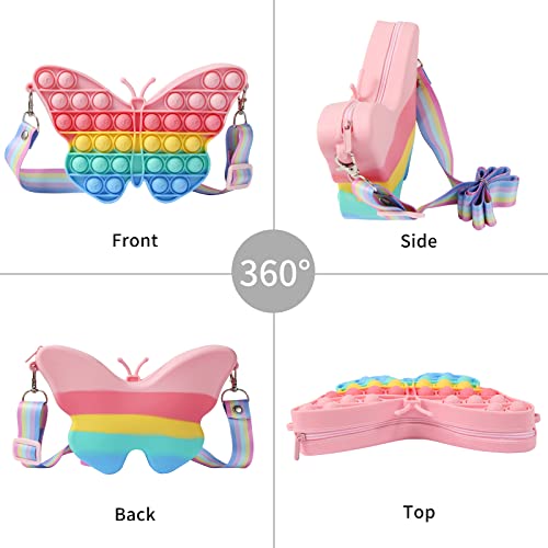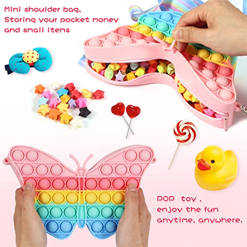 7iper - شنطة للبنات بنمط فقاعات منبثقة ولعبة فيدجيت 2 في 1 على شكل فراشة مع حزام كتف قابل للتعديل، محفظة صغيرة من السيليكون وهدية للأطفال من 7ايبير