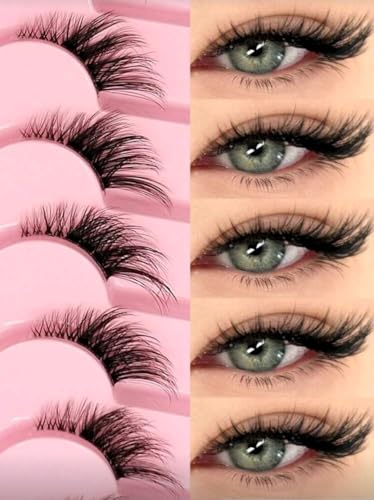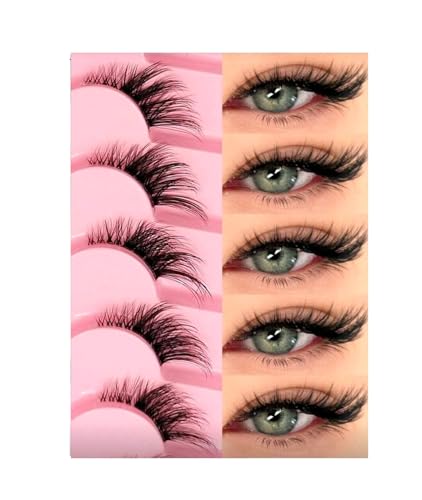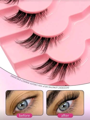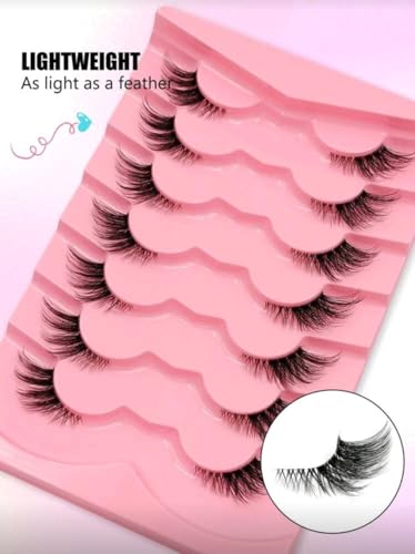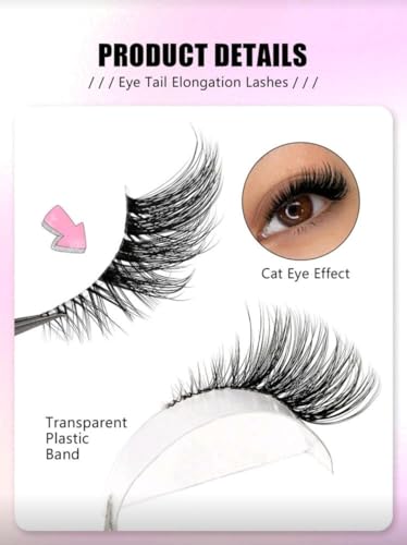 Generic - 7 ازواج من رموش العين الصناعية نصف شريطية، شريط شفاف مع وصلة ذيل عين القطة