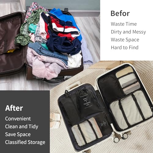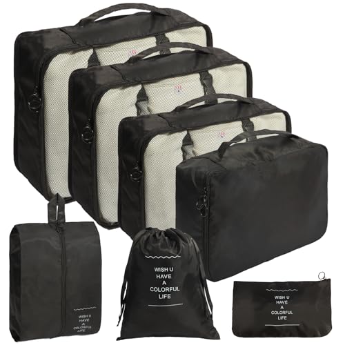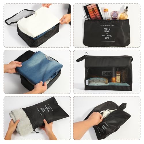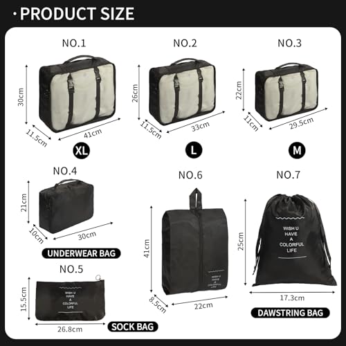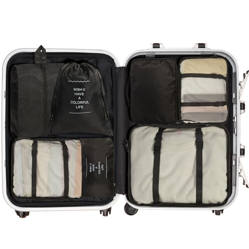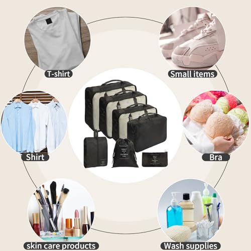 SECALIFE - أكياس تعبئة وتنظيم شنط السفر، مجموعة أكياس تنظيم شنط السفر لحمل مستلزمات السفر، أسود، 7 قطع