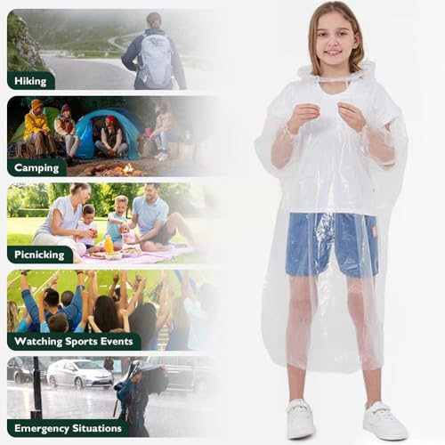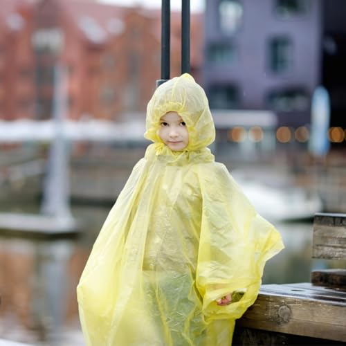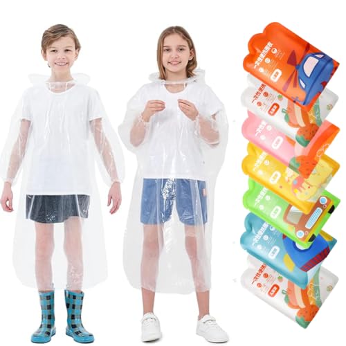 LCHYI - معطف مطر بغطاء رأس مقاوم للماء قابل لإعادة الاستخدام، جاكيت مناسب لتسلق الجبال في الهواء الطلق وركوب الدراجات والمشي لمسافات طويلة والتخييم للأطفال الأولاد والبنات، 7 قطع