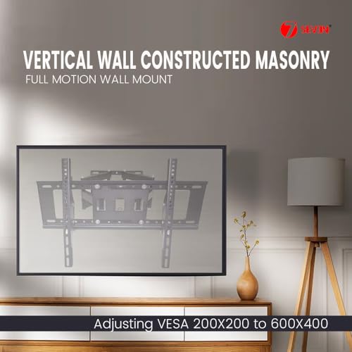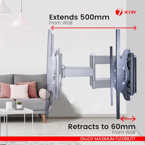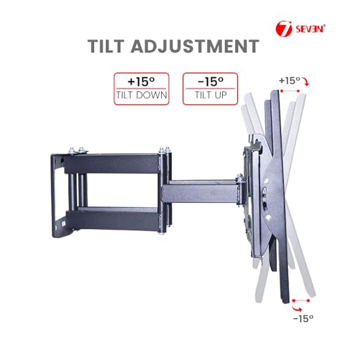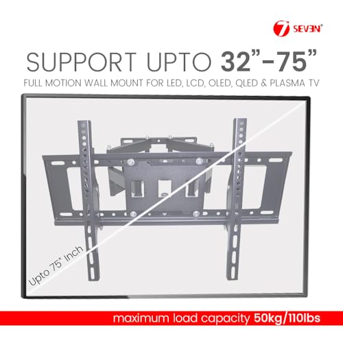 7 SEVEN - حامل تلفزيون يثبت على الحائط بإمكانية حركة كاملة من 7 سيفن® مناسب لتلفزيون مقاس 32 أو 43 أو 55 أو 65 أو 75 بوصة من أي علامة تجارية، حركة أمامية وخلفية وزاوية إمالة وتدوير الشاشة لليسار واليمين. مطابق