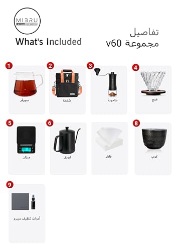 MIBRU - مجموعة تحضير القهوة بالتنقيط من ميبرو مناسبة تحتوي على قطع لتقطير وترشيح للتنقيط وتصفية تنقيط في 60 8 بني كيس