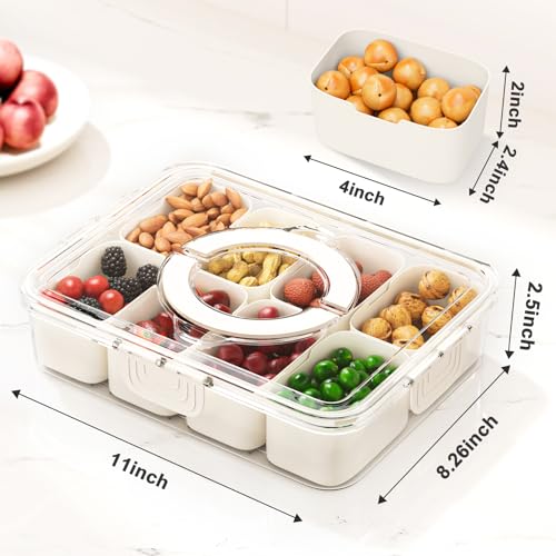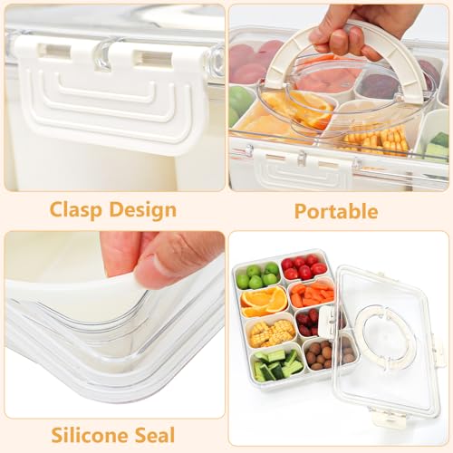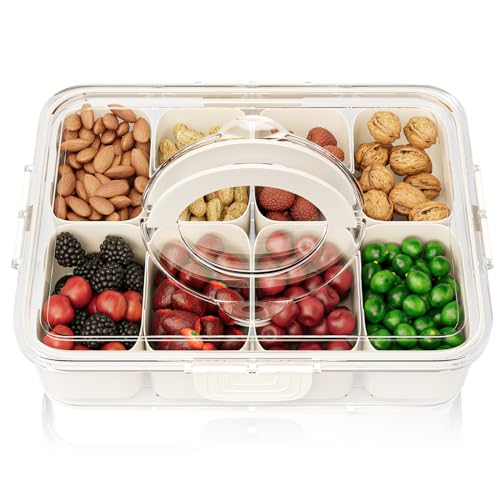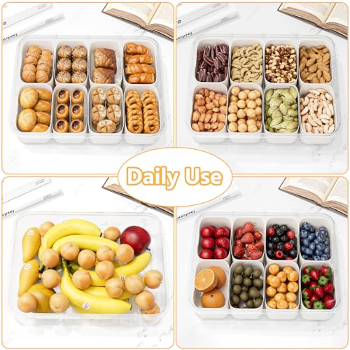 Foeacry - صندوق للوجبات الخفيفة مكون من 8 أقسام وصينية تقديم مقسمة بغطاء ومقبض للخضروات والفواكه والحلوى طبق ثلاجة شفاف قابل للإزالة ومنظم تشاركوتيري للسفر