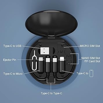 Generic - مجموعة أدوات تحويل الشحن المتكاملة 8 في 1 – كابل Type C إلى Type C مع محولات USB وMicroUSB وLightning، أداة إخراج SIM، فتحات لحفظ شرائح Nano وMicro SIM – مثالية للسفر والاستخدام اليومي