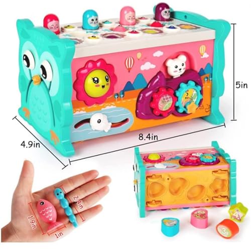 AM ANNA - مكعب نشاط للاطفال 8 في 1 لعبة مونتيسوري تنموية للمهارات الحركية الدقيقة، العاب مطرقة تعليمية، الصيد الحسية، فرز اشكال اكسيليفون، بعمر 1 2 3 4 سنوات هدية للاولاد والبنات