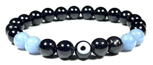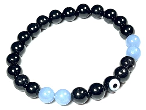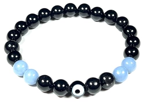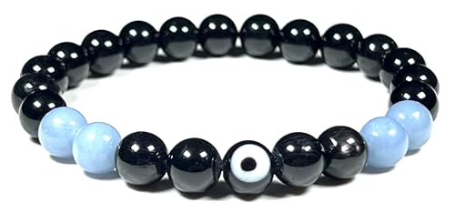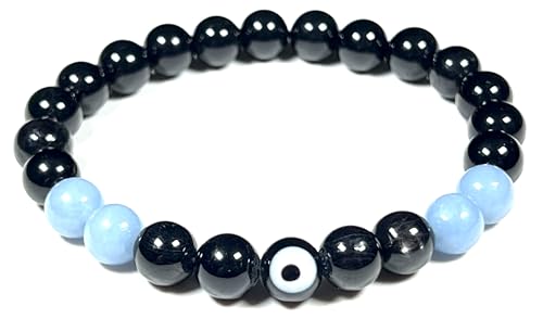 AWAKEN YOUR KUNDALINI - عقد 8 ملم من خرز انجيليت مالا ازرق معقود بدرجة ايه سوار حجر الملائكة النمو الروحي والنفسي الحدس المعزز دموع اباشي تورمالين الرجال