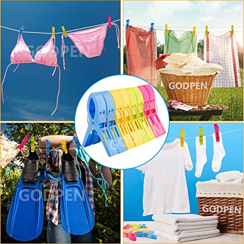 GODPEN - مشابك مناشف الشاطئ الملونة من 8 قطع، مشابك غسيل بلاستيكية كبيرة لسرير الشمس وكراسي التشمس والبطانيات وكراسي حمام السباحة والرحلات البحرية تحافظ على المنشفة من النفخ بعيدًا، 4 الوان زاهية