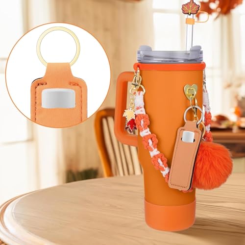 - سهولة التنظيم: مع سلسلة المفاتيح المزينة بكرات الفرو وحامل أحمر الشفاه المريح، لن تعاني بعد الآن من البحث عن مفاتيحك أو أحمر الشفاه ويتيح لك حزام الزهور المتين حمل كوبك بسهولة.