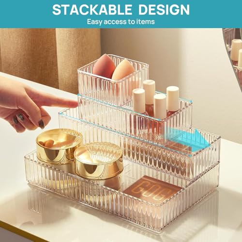 AREXOL - منظم أدراج من الأكريليك الشفاف للمطبخ وطاولة الزينة والمكتب، صواني تخزين متينة ومتعددة الأغراض للحصول على منزل أنيق ومرتب، مجموعة من 8 قطع