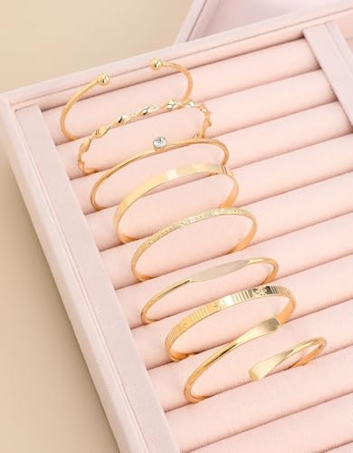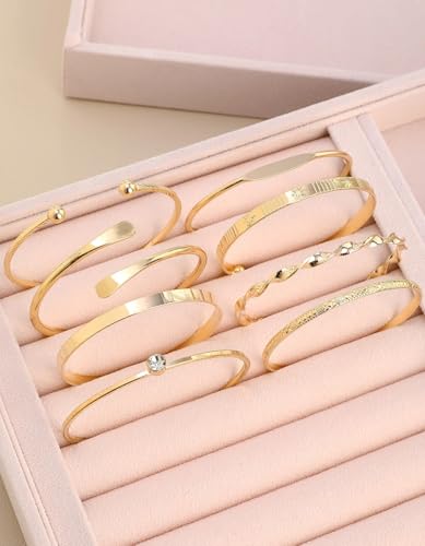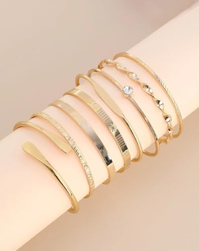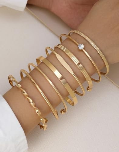 Generic - مجموعة أساور مفتوحة مرصعة بأحجار الراين بسيطة وكلاسيكية وعصرية مكونة من 8 قطع للارتداء اليومي للنساء