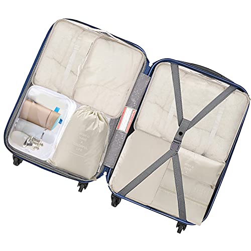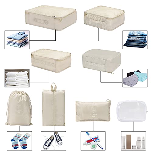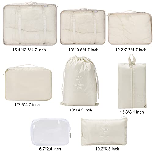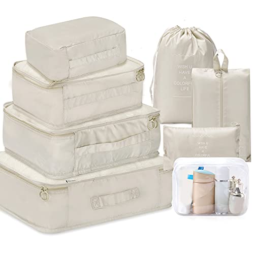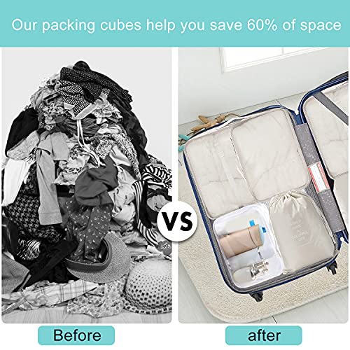 WantGor - اكياس وشنط تخزين منظمة لشنط السفر من وانت جور، شنط مضغوطة منظمة للسفر 6 + 1 كيس احذية + 1 شنطة ادوات زينة شفافة، 8 قطع