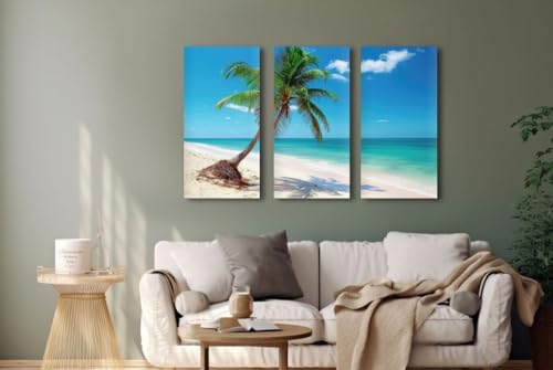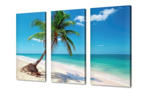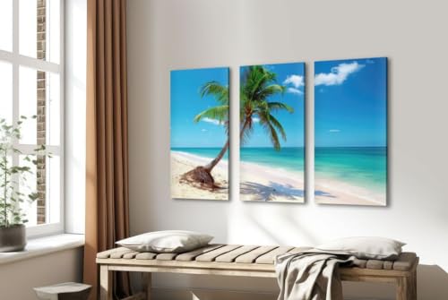سفير آرت - تابلوهات ديكور بتصميم شاطئ ونخلة مقاس 70 × 115 سم (طباعة على قماش – ملصق عصري) من سفير ارت SAL11، ازرق