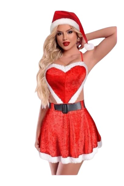 Generic - لانجيرى حريمي قطيفه فرنساوي + حزام - فرى سايز حتى 80 كيلو- لون أحمركريسماس - موديل رقم #: 316-429